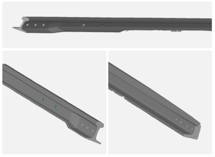 客戶主要產(chǎn)品為鐵路鋼軌和橋梁部件等,鐵路軌道及其部件質(zhì)量關(guān)系到列車的穩(wěn)定運(yùn)行,其安全性要求不言而喻,因此生產(chǎn)出的軌道需要經(jīng)過(guò)嚴(yán)格的檢測(cè)和校正程序。過(guò)去的方法是由工人憑借經(jīng)驗(yàn)判斷軌道的彎曲程度,效率低且精度難以有效控制,客戶希望借助三維掃描技術(shù)對(duì)軌道進(jìn)行高效精準(zhǔn)的檢測(cè),以替代傳統(tǒng)方案。