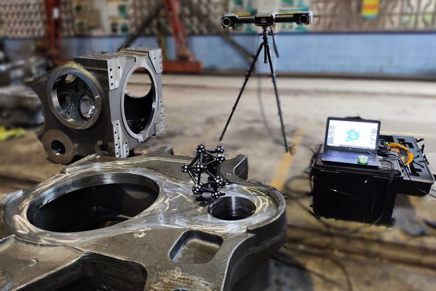 Hyperscan Ultra智能光學(xué)追蹤3D掃描儀因其小巧,便攜,高精度的特點(diǎn),不受工廠復(fù)雜環(huán)境的影響,既能滿(mǎn)足其檢測(cè)要求,又能極大的提高質(zhì)量檢測(cè)的效率,且能兼顧許多傳統(tǒng)檢具無(wú)法檢測(cè)的參數(shù)種類(lèi),已經(jīng)逐步被企業(yè)所接受和應(yīng)用,在工業(yè)質(zhì)量檢測(cè)領(lǐng)域得到了廣泛的應(yīng)用。尤其是在鑄造行業(yè),HyperScan Ultra 因其無(wú)需粘貼標(biāo)志點(diǎn),使用便攜等特點(diǎn),在應(yīng)用大型鑄件時(shí)有著快速全面的特點(diǎn),對(duì)提高此類(lèi)工件檢測(cè)效率有著巨大的提升和檢測(cè)環(huán)節(jié)的補(bǔ)充。