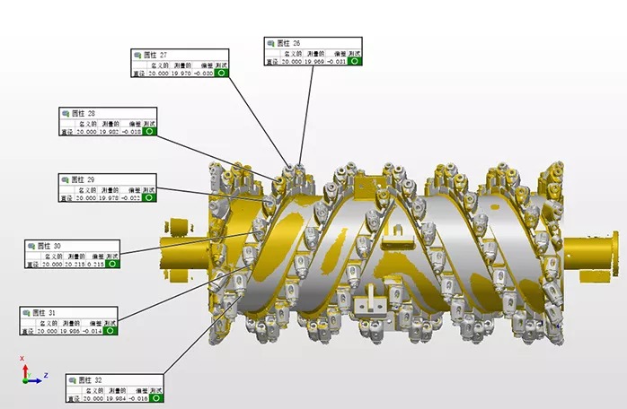 客戶采用Hyperscan智能光學(xué)追蹤3D掃描系統(tǒng),以非接觸式的測(cè)量方式獲得掃描數(shù)據(jù)后,通過軟件平移構(gòu)造裝配后的刀頭點(diǎn)位來做準(zhǔn)確測(cè)量,可以很好地改善這一狀況。